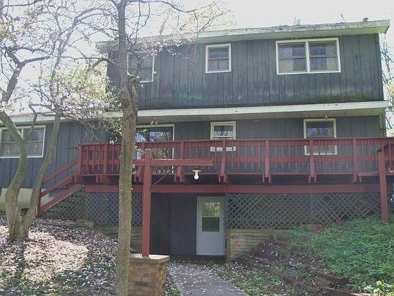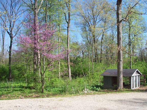 Over 9 acres of wooded bliss! This country home is ready for the next generation to make it their own. Quaint kitchen has lots of counter space with a dining area in front of sliding glass doors that lead to the deck. A formal dining room, off the kitchen, with a bay window offering beautiful views of the mature landscaping. Observe the tranquil nature of your backyard from your deck, also great for grilling out. Inviting, 3-season front porch, large living room with bay window and pocket door to a den. Three ample bedrooms and a master suite. Nice family room with built-in shelves and buffet plus a wood burning fireplace with exposed brick in the walkout basement. Carport keeps a couple of vehicles dry with 2 other outbuildings, a storage shed and a dog kennel. Lots of potential in this serene setting. Explore the hiking trails through your wooded acreage with a small stream for attracting wildlife. Don't miss the blooming dogwoods in the spring. Good price for a solid home with room to expand. A $7000 flooring allowance with acceptable offer.