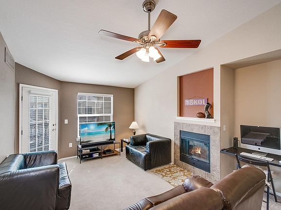This beautiful 2 bedroom, 2 bathroom condo is ready to move in. Features vaulted ceilings, large open kitchen and great room where you can relax in front of the gas fireplace. Granite counters and bar seating adjacent to dining area. All appliances and washer and dryer are included. 2 ceiling fans. Balcony off the great room and a 2nd balcony off the master bedroom. Storage closet on the balcony. Master bedroom features a very large closet and a bath with 2 sinks, granite counters, walk-in linen closet and oversized soaking tub. This is one of the rarer units that includes a garage. Amenities include a clubhouse with a fitness center, a room with full kitchen for parties, swimming pool, hot tub, volleyball court and open space and playground. Adjacent to the Cherry Creek trail where you can walk, jog, bike or take Fido for a walk. RTD Park n Ride just down the road.