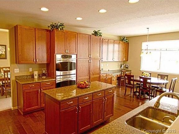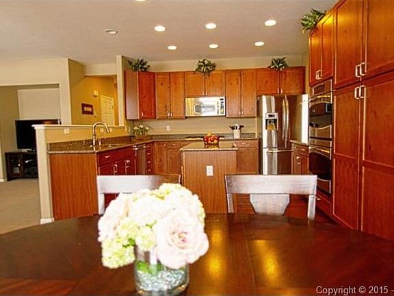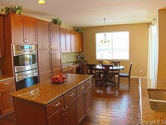 This is a beautiful and fully upgraded home in Village Center Estates close to Monument and the North end of Colorado Springs. This house shows like a model home and is a must see. The property is fully upgrade throughout! Upgrades include a bright and spacious open floor plan with lots of windows to allow the natural light in. The entry way boasts elegance with the large wood planked floors that lead into the kitchen and living area.,The main floor holds a large open eat-in gourmet kitchen with high-end stainless steel appliances, double ovens, gas cook top stove, knotty alder cabinets a large island with granite countertops. The kitchen opens up to the large family room with a gas fire place and also an eat in nook that allows access to the back yard with a covered concrete patio with beautiful mountain range views. The floor plan allows for plenty of room for entertaining inside and out! Also, on the main level living is a front room office with French doors a half bathroom and a large laundry room. Upstairs does not disappoint - it features a spacious master retreat with a five piece master bath and large walk in closet. A secluded guest bedroom with attached full bathroom and two additional bedrooms adjoined by a full "Jack and Jill" bathroom. The house is topped up with perfectionist touches such as brushed nickel finishes throughout. The unfinished basement allows for the future buyers to grow into their home in whatever capacity they choose. The entire property has been professionally landscaped and fully fenced with beautiful mountain views to die for!