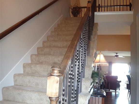 Maintenance provided Town home with all the bells & whistles! Granite, iron spindles, gleaming hardwoods, ceramic tile, blinds and beautiful stone, gas, flip switch F/P. Open & bright with vaulted ceilings and catwalk overlooking the great room. 3 spacious bedrooms w/master on the 1st floor, kitchen has island and spacious dining area. Relax on your deck or grill out and enjoy the sunset. @ car garage w/opener, located in a quiet culdesac.