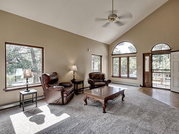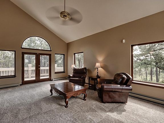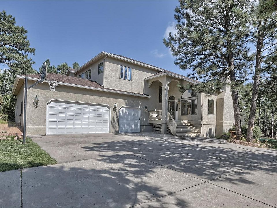 Come home to this 2.61 acre, tranquil & treed lot. The open floor plan & generous sized rooms allow for ease in entertaining & comfortable everyday living. The kitchen features slab granite counters, cherry cabinets, large island, gas cooktop, double ovens & indoor grill. Warm your body & nourish your mind while kicking back in front of any of the 3 fireplaces. The master retreat includes:double sided fireplace, spacious walk-in closet w/built in storage, 5 piece bath w/jetted tub. New carpet on main & lower levels. Updated baths. Take in the views & enjoy all 4 seasons outdoors on the expanded wraparound decks on all 3 levels. The lot includes:circular driveway, manicured grass for play area or entertaining, putting & chipping green for the golf enthusiast & tree house. Oversized, insulated & heated 3 car garage. Additional storage shed & RV parking. New roof & gutters in July. Low maintenance stucco. No HOA. Only minutes from I-25 & a convenient commute to Colorado Springs or Denver.
