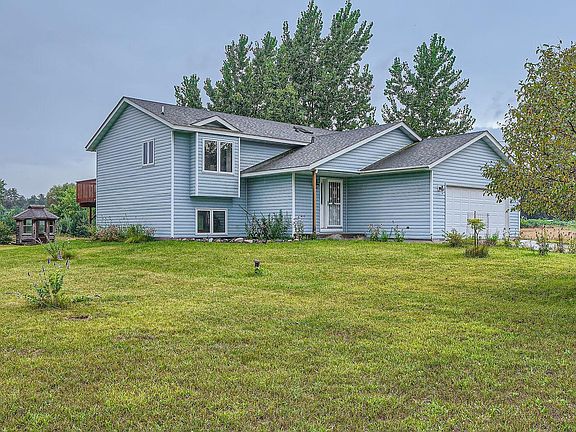 Don’t miss this opportunity to own nearly 5 acres of property with home ready for expansion and loads of potential! Enjoy privacy surrounded by pine trees with plenty of room to add additional buildings. Home features vaulted ceilings and skylights for lots of natural lighting, formal dining room with patio door leading to deck and back yard, bedrooms with walk-in closets, and private walk-through to the bathroom. Lower level is a walk-out that has been partially finished for a future family room, 3rd bedroom and full bathroom hookup. So much outdoor fun to be had with the deck, gazebo, and plenty of room to explore! When entering the driveway facing the home, the acreage extends as follows: To the right the fence represents the boundary line, to the left the side road represents a boundary line, and straight back the property goes all the way to and including the line of poplar trees. Over a hundred native trees have been planted and hundreds of native flowers and plants as well. Enjoy all of the nature including butterflies, dragonflies, birds and sandhill cranes!