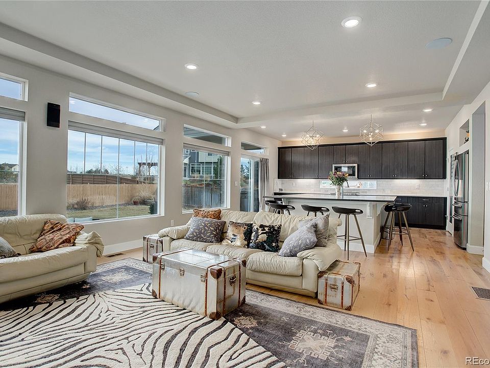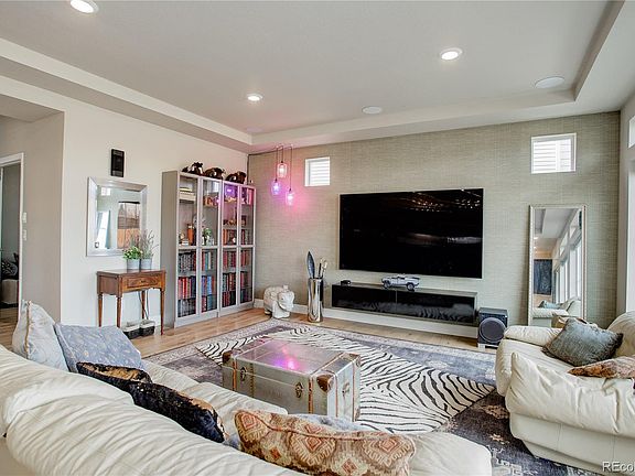 Fabulous four bedroom, three bath home comes with whole house audio and receiver with volume controls in each room and includes surround sound and speakers. CAT-6 Ethernet with access points on all floors and wired for external cameras. Solar installed to help electric use plus a full house water filtration system. The kitchen features stainless steel appliances, pantry, an island with power and seating for eight plus a suction kick plate at the floor for quick clean ups using the central vac system. The bank of windows across the back of the home showcases the great views from the kitchen and family room featuring top down-bottom up shades and is completed with a den, a half bath and closet at the entry. The gracious second floor primary bedroom offers an ensuite bath and walk-in closet. Two additional bedrooms, a full bath, a laundry room and a sitting area/gym with remote-controlled shades on the high windows complete this area. The partially finished basement offers many options-a primary suite, office or entertainment room that is plumbed in two places for a wet bar. There's rough-in plumbing for the fourth bath with additional space to finish as needed. Moving outside is a cozy covered front porch with seating area, a covered patio in back with natural gas to the BBQ grill and a propane line run under the new deck for the firepit. The professionally landscaped yard backs to a section of greenbelt, has sprinklers front and back and a drip irrigation system to the garden and flower pots. A two-car heated and insulated garage has a four-foot side extension and Tesla EV destination Version two charging station. (There are converters available for J1772 EV-equipped cars)