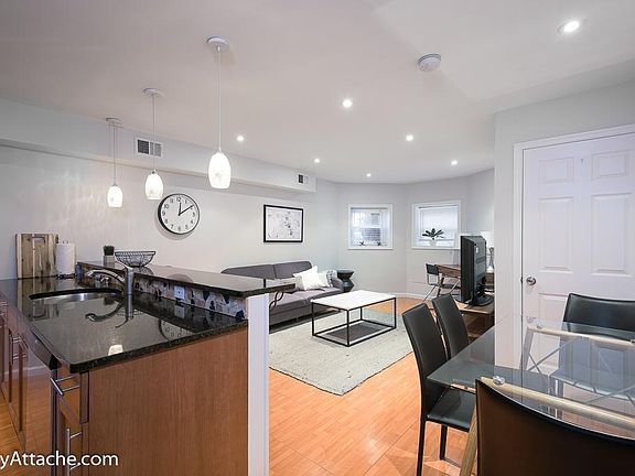 Enjoy living on a quiet one-way tree-lined street in Dupont Circle in this large renovated 2 bedroom, 2 bathroom furnished rowhouse basement unit. The location is rated "Walkers Paradise" by Walk Score with endless restaurants, grocery stores (including Trader Joe's, Safeway, and Whole Foods), shopping, and the Dupont Metro Red Line a short distance. Property features include windows on three sides, central air conditioning, an in-unit washer and dryer. The kitchen has stainless steel appliances, a gas stove, dishwasher, microwave, large island with seating that opens up into the living area with modern furnishings. The master bedroom has an ensuite bathroom with a jacuzzi tub, and king size bed. The second bedroom has a queen-size bed. The living area has a sleeper sofa. *Parking availability must be confirmed. Please note that the property does come fully furnished and requires at least a 30-day stay in order to book. If you would like to proceed with renting the property, we do ask that you fill out an application with us directly. Applications are processed on a first-come, first-served basis. Please inquire for more information. The property is fully furnished and includes all utilities including WIFI.