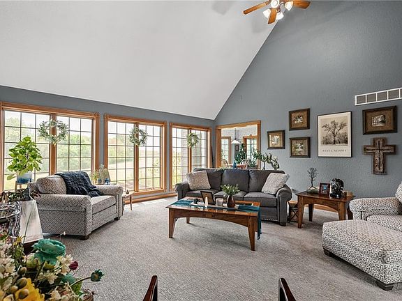 Welcome to your country retreat! A Tim Haedt custom built home offering main level living and nestled on 5 beautifully landscaped acres surrounded by rolling hills and countryside. Tucked away on a scenic road just 10 miles from St. Joseph and a 50-minute drive to Kansas City International Airport, this home has 40 energy-efficient solar panels (not on the roof) keeping electrical bills at a minimum. For winding down, relaxing and entertaining this home offers it all including a large kitchen with an eat-in breakfast nook, cozy screened-in porch, formal dining, large rec room/bar, and a walkout basement onto a landscaped patio area including hot tub, outdoor sound system, and heater. The primary suite and laundry are on the main level. This immaculate home offers two office areas for remote work needs. A 4th bedroom and full bathroom located in the walkout basement is perfect for generational living options. The second level has two bedrooms and a den/playroom for flexible space. Surrounded by views of pristinely landscaped acreage and wildlife, this one-owner home has been lovingly cared for on the inside and outside and is move-in ready. Some recent updates and features include LP Smart Siding (2021), New Gutters/Soffits (2021), GE Oven (2025), GE Microwave (2025), Bosch Dishwasher (2024). The infrared sauna and hot tub stay with the property. This countryside gem offers the perfect blend of privacy, convenience, and timeless design and is ideal for nature lovers, outdoor sportsman and landscaping enthusiasts. Escape from the hustle and come tour this peaceful country retreat with 4 bedrooms, 3.5 baths. Schedule your showing today.