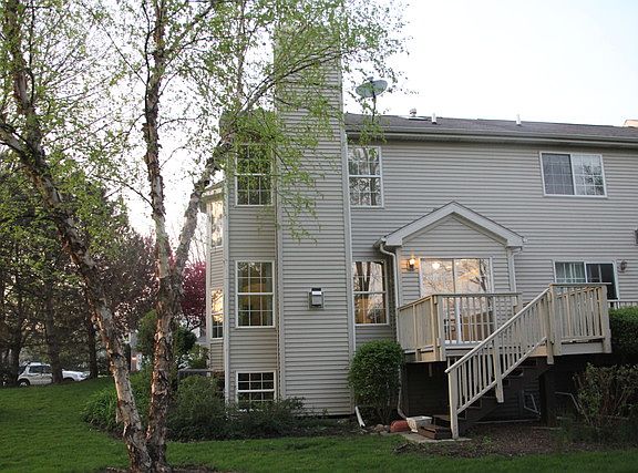 End unit w/side entry, most private site in area, backs to Seven Bridges Golf Course...views of open space on all three sides. Neutral throughout; fully applianced; new roof in 2015; high efficiency furnace and A/C in 2013; full unfin English lookout bsmt stubbed for bath; newer deck w/stairs; 2BR + loft w/closet (just close opening for third BR). Walk to Benedictine University; easy access to train/tollways/parks.