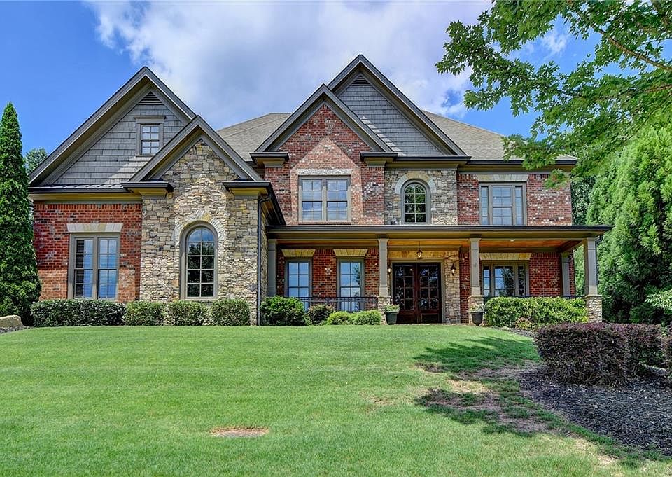 Welcome to 1745 Cone Flower Dr., an exquisite executive home located in the sought after gated community of Turnberry. This stunning custom built all brick and stone home offers 6 Bedrooms and 6 1/2 Bathrooms, 3 Car Garage is situated in a cul de sac located within the prestigious Lambert HS district. Beautiful finishes and attention to detail are evident throughout this home. The large stone front porch invites you and your guests into the grand 2 story foyer with hardwood floors leading throughout the entire home. The study offers built-ins and rich stained paneled walls with glass doors for added privacy. The formal dining room is large enough to host gatherings of 12 or more guests. Step into the formal living room/great room where the fireplace, coffered ceiling and built in bookcases are the focus. The expansive kitchen is every cook's dream! There is a fantastic flow for entertaining & a massive center island, not to mention a fabulous space for cooking lavish meals! Rich stained wood cabinets are complimented with exotic granite counters and a glass backsplash. Nicely appointed with a built in fridge, double ovens, pot filler, microwave & 5 burner gas cooktop. The vaulted fireside keeping room features a view to the kitchen, built in cabinetry and beamed ceilings. Private guest suite on the main level features a full bath and walk-in closet. Wood staircase leads to the gorgeous hardwoods featured throughout the upstairs too! The Primary Bedroom located upstairs offers a sitting area with a view to the private yard, a large walk-in closet and gorgeous bath with a freestanding tub, travertine shower w/dual shower heads and large double vanity with tons of space for organizing toiletries, beauty products and linens. 3 additional en suite bedrooms w/walk in closets and volume ceilings plus the laundry room completes the second story. Finished terrace level has been newly renovated and features a media room complete with projector and movie screen, a full bar with ice maker, kegerator, wine fridge and beverage fridge. There is a wine tasting room (also great for a game room)with stone accent walls and a rec room. Relax outdoors on the large partially covered maintenance free deck while listening to the waterfall spill over into the Koi pond AND enjoy cooler evenings around the firepit. Lots of room to run and play in the very private fenced backyard.
