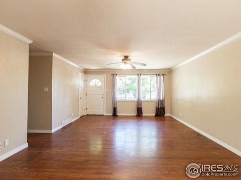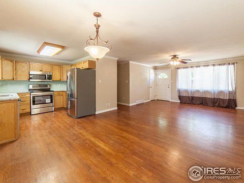 Check out this Classic 3 bedroom brick ranch located on a quiet street in Longmont. This house has been recently updated, including new roof, exterior paint, S.S. appliances, granite counter tops, glass subway tile backsplash, and more. There are wood floors and crown molding in the living room, hall, and in all 3 bedrooms, large fenced back yard, patio, and mature trees that backs to a alley. New furnace and water heater, low maintenance, close to parks and downtown. Must see!