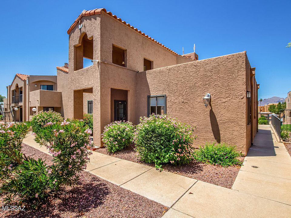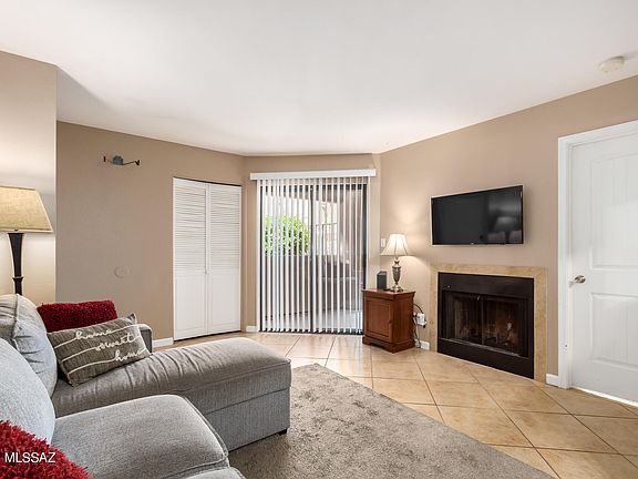 Welcome home to this move-in ready 2 bedroom, 2 bathroom condo in the very desirable gated Tucson community of Copper Star. Location cannot be beat, lower level pool side with a covered patio, close to dining and shopping AND only 2 miles to UofA! The open concept family room features tile flooring and a wood burning fireplace. The kitchen has ample cabinetry, pantry and eat-in nook! The primary retreat offers an en-suite and walk in closet. The additional bedroom shares the hall bathroom. The unit has 2 assigned parking spaces, one covered and one uncovered. The HOA fees cover pool, laundry facilities, clubhouse, water, sewer, trash AND internet. Do not miss this opportunity, schedule your showing today.