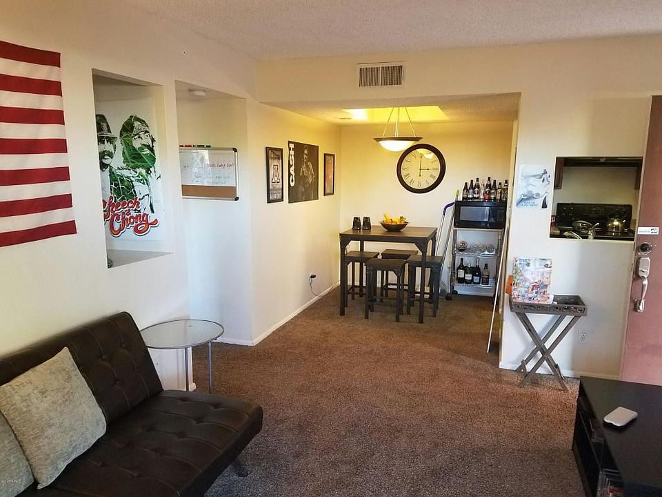 The Condo King presents popular Copper Star Condo! Located biking distance to the UofA, the modern street car, and walking distance to Cattran and Suntran. This light, bright, and open home is one of the only units with a backyard and is appointed with beautiful cherry color cabinets and black appliances. These condos have all the convenience of living in the heart of Tucson located on restaurant row with all the natural beauty the area has to offer.Resort-like amenities include:gated community,security cameras,pool,spa,basketball court,exercise room & clubhouse. Water and wifi is included in the HOA fee. These condos fit the fannie and freddie requirements and can get conventional financing.