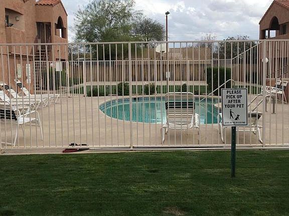Cute 1 story condo just steps from the community pool and spa located within minutes to the University of Arizona, close proximity to shopping, restaurants AND in a gated community.Adjacent to bus routes and UofA trans route. Community features BBQ,covered ramada,exercise facilities,Rec/community center.HOA covers WIFI, water, sewer NO SPDS,CLUE. SOLD AS IS. Please include AS IS addendum.Seller's choice title company. Purchase offer subject to Bank addendum.