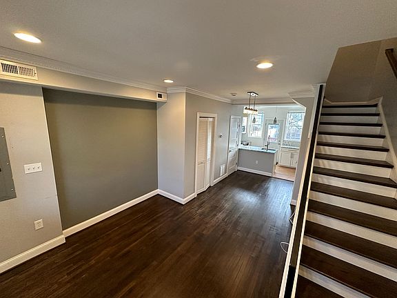 Bright and recently renovated 2BR Townhouse with hardwood floors, lots of storage space. The first level is open with a great kitchen and a half bath. The top level has two bedrooms and a full bath. Freshly painted, Central Heat and Air, In unit Washer Dryer. The exterior has a nice front porch, and rear deck. Grill and garden area in the back yard. Parking pad for off street parking. Available now. Tenants responsible for all utilities