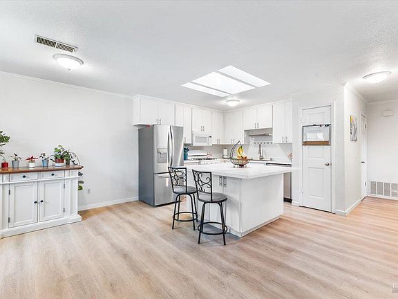 Peaceful tucked away updated 3-bedroom, 2-bath single-level end-unit offers bright, modern living in a tranquil setting. The home features vinyl plank floors, a skylit kitchen with a custom island, sleek finishes, and convenient in-unit laundry. Enjoy the privacy of no upstairs neighbors, plus an oversized patio in your private yard. Set back on the end of the complex you really do feel like you have your own sanctuary. Enjoy effortless access to scenic walking trails right behind the home. Includes two dedicated parking spots (one covered) and plenty of guest/street parking. Amenities include two sparkling pools and beautifully maintained green spaces. Ideally located near Rinconada Park and top-rated Rincon Valley schools. Pets OK. Water included.