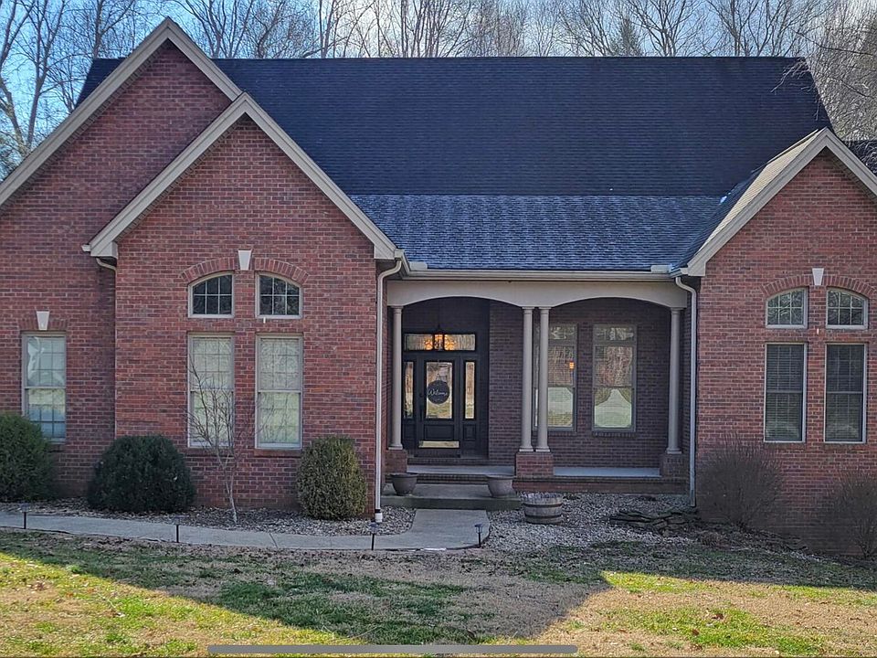 In Spring Gate Subdivision you will find this gorgeous custom 3 BR, 3BA, brick home situated on a 1.65 acre lot. When entering the home you will notice a beautiful foyer leading into the Great Room with Volume Tray Ceilings, and Dining Room with an abundance of natural light. The kitchen has cherry cabinetry, Granite Countertops, Stainless appliances and a breakfast area overlooking the backyard. The master suite includes tray ceilings, hard wood floors, walk in closets, double vanities, whirlpool, and separate shower. This home also has a full walk out basement with fireplace. It is partially finished with full bath, lots of storage, unfinished space, and a utility garage. The outdoor space is perfect for entertaining. You will find a beautiful back porch overlooking the above ground heated pool, a hot tub, and a fire pit.