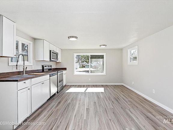 Fully Remodeled. New Roof, New Windows, New Kitchen, New Floors. Wash/Dryer Hook ups. Mostly fenced. Close to everything in Boise. Owner Will Finance with 5% down. Mortgage Estimate with $3,600 Down = $760/mo + $80 (taxes&insurance). $8,000 Down = $616/mo + $80 (taxes&insurance). $15,000 Down = $561/mo + $80 (taxes&insurance). Estimated closing costs: $1,400. Lot Rent @ $585/mo Virtual Staging, no furniture included. Year Built: 1978 Model: TITAN.
