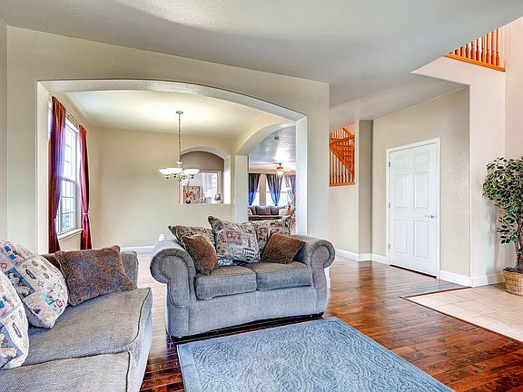 Let the light shine in! Open floor concept with oversized windows. This 3 bedroom, 3 bath home is move-in ready featuring newly painted exterior, new carpet and beautiful wood flooring. Enjoy entertaining in the spacious kitchen with new stainless steel oven/range/microwave/dishwasher. Kitchen opens up to the great room with dual sided fireplace. Private main floor office. The huge master bedroom offers a dual sided fireplace, sitting area, spacious walk in closet, 5 piece bath with oversized soaker tub. Loft contributes to open concept feel offering additional space for a media room/game room/study option with additional storage closet. Upstairs offers 2 newly carpeted bedrooms, with large walk-in closets. Upstairs features full bathroom with double vanity. This property offers a private backyard, concrete patio with flat yard. Relaxation! This is a home to enjoy.