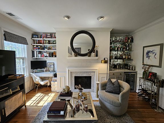 RARE find! This newly renovated, one bedroom condo is located on one of the best blocks in Dupont Circle. This upper level two-floor unit lives like a rowhouse, is flooded with natural light from its south-facing windows, and offers 800 sq ft of living space with a dedicated parking spot. The main floor consists of an open concept living room centered with a marble hearth wood-burning fireplace and is flanked with deep shelves on the window side and a built in cabinet with wine refrigerator and glass shelving unit on the wall side. A built in window bench provides extra storage and be used a seating for a table or reading corner. The bespoke kitchen has all new, full size, black stainless steel Samsung appliances, quartz countertops, gold fixtures, and coffee bar. Refrigerator has integrated removable water pitcher with a flex zone and freezer that includes two different sized ice. Upstairs, the bedroom has three large windows and three separate closets, including one walk-in. The bathroom vanity has marble top and has a large closet with Bosch washer and dryer. The apartment is minutes away from the Dupont Red line metro and the famous 17th street. Walk mere minutes to the original Hank's and Duke's as well as your new Safeway, hardware store, and dry cleaner. 12 month lease. Owner pays for water, trash, and common-area services. Renter pays for electric and internet. No smoking allowed in the unit. Maximum two pets. Dedicated parking space in space 'N' located in rear of building.