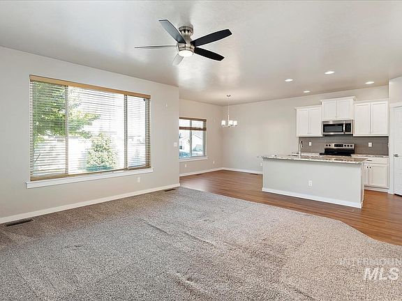 Fantastic Meridian Single Level with a Bonus Room! Great floorplan with a separation between the primary bedroom suite and the two additional bedrooms & full bath, offering a bit of privacy. Bright & open living, dining and kitchen offers plenty of space for gatherings. Beautiful white kitchen with stainless appliances, a large island with breakfast bar and a pantry. Large bonus room offers lots of great options from additional living space, a home office, a home gym, guest quarters or a play room. The back yard provides a partially covered patio and beautiful, zero maintainence landscaping so you can spend your weekends relaxing in your new home or enjoying all of the amenities that the greater Meridian area has to offer. Situated on a corner lot, this home has close proximity to schools, restaurants, shopping and entertainment. This move in ready house is ready for you to call it home!