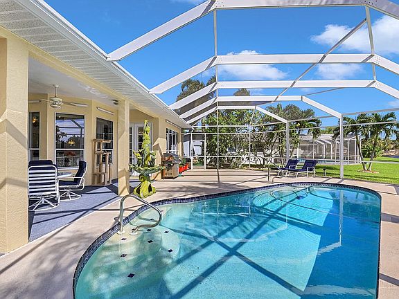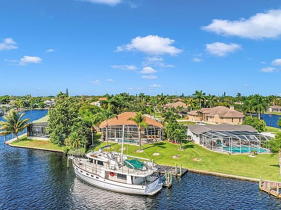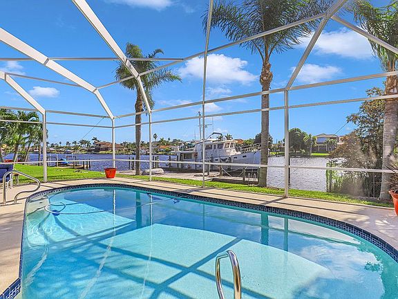Location, location, location! Just minutes to the river, and on one of the widest canals in Cape Coral! Welcome to this spacious 3 bed 2 bath home with tile throughout the main living areas and beautiful views from nearly every room in the house. You've been looking for a home with dockage for your yacht that is just minutes to open water, that has plenty of room to maneuver your vessel while docking? Well, this is it! The home features a 4 year new roof, brand new re-pipe Dec 2020, granite and stainless in the kitchen, an oversized lot with mature palms, sunrise views and a big lanai and pool area overlooking the water. Make your showing appointment today after viewing the walk through video.