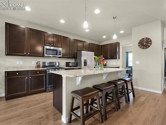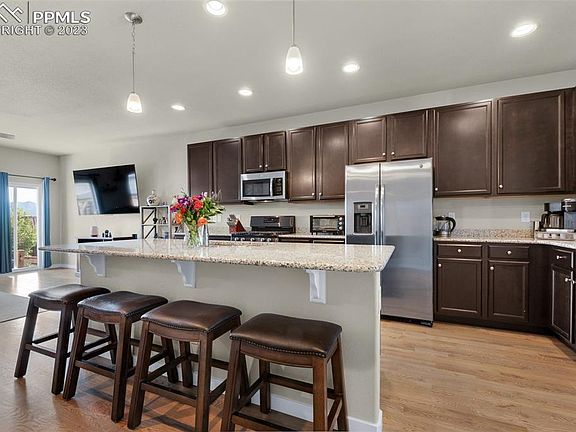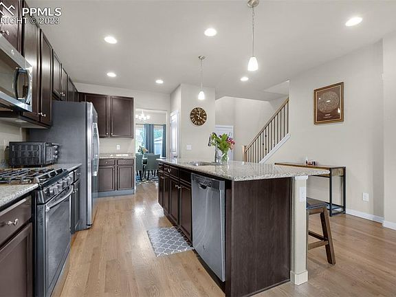 Welcome to this meticulously maintained 2-story home in a charming Monument location, offering stunning mountain views. Nestled within The Dunes at Woodmoor, this home boasts a strong sense of community among its 56 residences. 24-hour security ensures peace of mind for all residents. As you arrive, you'll be greeted by a classic covered front porch. Step inside to discover a bright and sunny open floor plan, adorned with beautiful hardwood flooring throughout the main level. The formal dining room provides an ideal space for hosting large gatherings, while the chef-worthy kitchen seamlessly connects to the living room. Designed with the culinary enthusiast in mind, the kitchen features abundant 42" espresso wood cabinetry, a pantry for added storage, sleek granite countertops, a desirable 5-burner gas range, and an extensive center eat-in island. This space is perfect for preparing delicious meals and entertaining guests. Open the sliding door off the living room, and you'll find a newly extended patio with a fixed pergola that beckons you to host summertime BBQs and create lasting memories with family and friends. Upstairs, three generous-sized bedrooms await, including the primary retreat that offers breathtaking mountain views. The primary bedroom also boasts a lovely 5-piece en-suite bath, providing a private oasis for relaxation and rejuvenation. The unfinished basement, equipped with a bath rough-in, offers ample potential for future growth and customization to suit your needs. Convenience is key in this location, as you'll find yourself within walking distance to several medical offices, a brewery, and scenic trails leading to Woodmoor Lake and the community center barn. The easy freeway access and proximity to Monument Lake and Palmer Lake further enhance the appeal of this home. Embrace the sense of community, enjoy the picturesque mountain views, and create cherished memories in this delightful abode. Schedule your showing today!