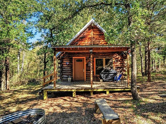 Want to get away? Enjoy your days with play and adventure and quiet evenings on the front porch of this awesome cabin located on 33 acres in Whitesboro. This property has what you are looking for! Cabin has all utilities including aerobic septic system, water and electric and a propane tank for instant hot water. Features of the cabin include upgraded windows, large soaking tub, outdoor shower, combination washer and ventless dryer and refrigerator. Cabin could easily accommodate sleeping for up to 6 people. One private bedroom downstairs and a loft upstairs. Property is located approximately 20 minutes from Lake Texoma! Property currently has an Ag exemption and wildlife exemption.