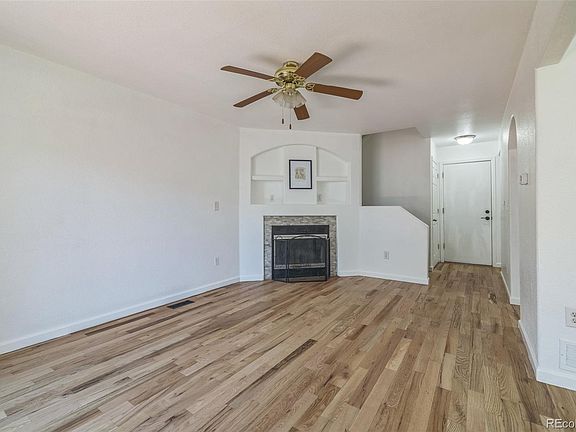 FANTASTIC 4 Bedroom, 3.5 Bathroom 2-story townhome in Thornton! The main level has hardwood floors and a nice open flow between the Living Room with cozy wood-burning fireplace, Dining Room, and Kitchen. The Kitchen features updated shaker-style cabinets and stainless-steel appliances, and a powder room completes the main level. Upstairs has new carpet, and you'll find 3 Bedrooms, including the Primary, which has a private en-suite bathroom and a large walk-in closet. Two additional bedrooms share a full bath to complete the upper level. You'll love the finished basement, which has two living spaces, an updated bathroom, and the washer and dryer! A private patio faces the quiet courtyard, and is ready for your grill and outdoor furniture! 2-car garage for your convenience, offers additional storage with built-in shelves. Easy access to major highways to the Mountains and downtown Denver! Call for a private showing!