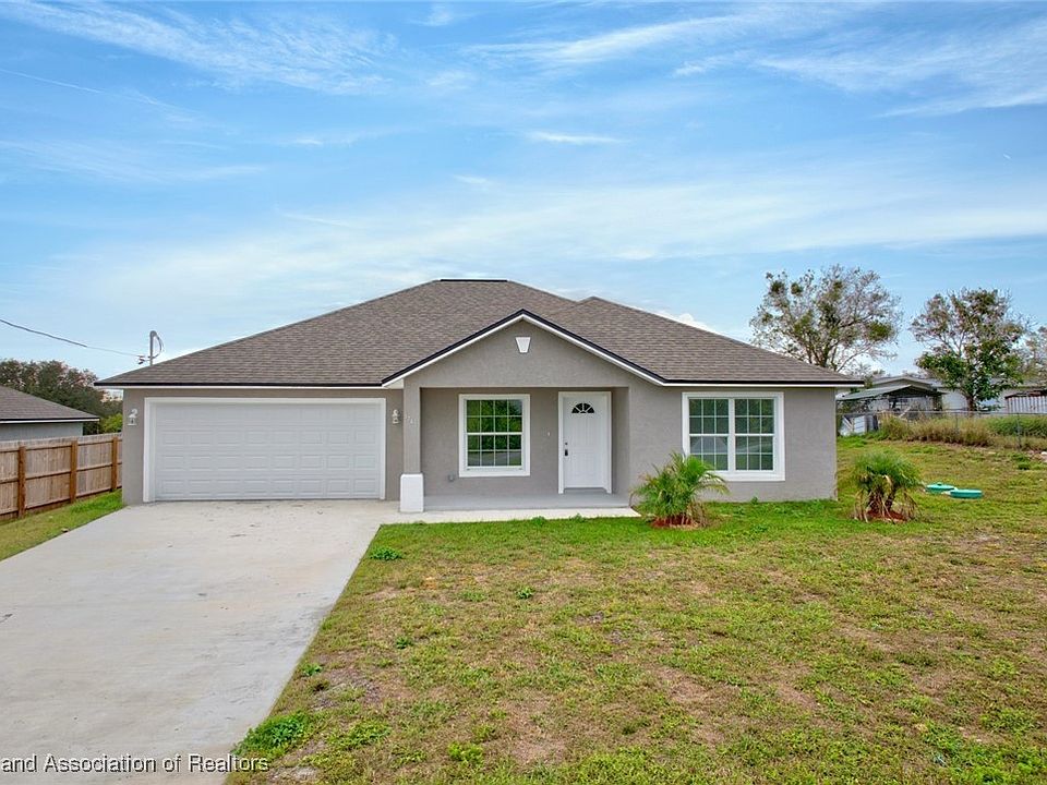 Welcome to this stunning new construction home in Avon Park! This spacious 3-bedroom, 2-bathroom home with nearly 1800 square feet of living space boasts modern upgrades and luxurious finishes throughout. As you step inside, you'll be greeted by beautiful luxury vinyl plank flooring that flows seamlessly throughout the entire home. The open-concept kitchen is a true highlight, featuring a large island with ample storage, elegant mahogany wood cabinetry, gleaming white quartz countertops, and high-end stainless steel appliances – perfect for both cooking and entertaining. The kitchen flows effortlessly into the expansive living and dining areas, providing an ideal space for gatherings and relaxation. The master suite is a private retreat, complete with an attached master bathroom featuring a walk-in shower and a spacious walk-in closet. The two generously sized guest bedrooms share a stylish guest bathroom, offering comfort and privacy for family and visitors alike. Convenience is key with an in-house laundry room, upgraded light fixtures, and 6” baseboards that add a touch of elegance throughout the home. The attached 2-car garage provides additional storage and parking space. This brand-new home combines contemporary style with practical design – all within the charming setting of Avon Park. Don’t miss your chance to make this beautiful home yours!