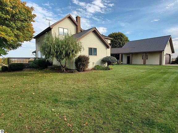 Modern Farm Home just outside of town and in the highly sought after Beal City School District. This 4 bedroom 2 Bath home has tons to offer. The home has both a main floor and upper level master bedrooms, with ensuites. The home has a formal dinning room and an eat-in kitchen. The home has seen many updates including new paint and floor coverings in the master, renovated bathrooms, new french doors off the dinning room and more. The home has four seperate out buildings including detached (yet covered entrance) garage with a bonus room above, 30 x 40 finished pole barn, animal shelter, and large storage shed. Home has a forced air furnace and A/C and an outdoor wood boiler that can also heat the homes water. Plenty to enjoy outside with an above ground pool, patio with a fire pit in it, a play set, and a variety of fruit trees. Sellers have decided to relocate back to a warmer climate. Get this one before it's gone!