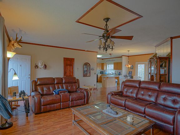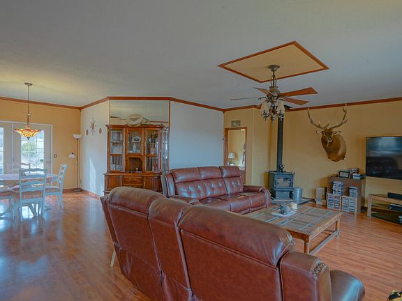 If you are looking for seclusion close to town, this is your new home! Enjoy the sunsets on the plains to your east from the front of the home and complete mountainous seclusion in the back wooded mountains of the west part of the property. 60 acres to roam, hunt and explore! This one-level, ranch-style home has an open living concept. Two bedrooms, a full bath, and living room are located on one side of the home with a large master suite, walk-in closet, and 5 piece bath on the opposite side of the home. The large great room, open kitchen, and a dining area are great for entertaining or family time! The 60x40 shop will hold all of the toys or provide room for hobbies as there is a 19x15 concrete floor, finished shop inside! The road to the property was recently graveled with over $11,000