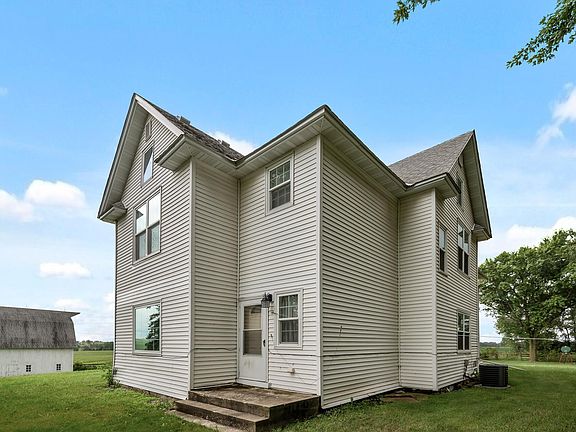 Charming hobby farm & remodeled 2-story farmhouse on 6.55 acres with 60x30 pole shed, 60x34 classic 2-story barn with 4 box stalls, 3 shelters/lean-tos, sheds, fenced pastures & wooded site! Main floor living with mud/laundry room, newer ¾ tiled bath, spacious main floor bedroom, formal dining & living room plus kitchen remodeled kitchen features Bosch dishwasher, vented hood, stainless steel Samsung refrigerator & 5 burner gas range. Two pantries and lots of cabinetry for storage. Upper level has 3 large bedrooms (2 bedrooms have walk-in closets) & 2 newer tile baths (primary has a ¾ bath & hall bath is a full tile bath). Both bathrooms have a double sink vanity with storage tower cabinet separating the sinks. Additional highlights include many new windows, deep baseboards, knockdown ceilings & hardwood floors. Move in ready!