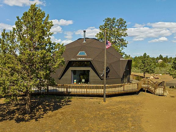 Welcome home to the dome! Dynamic mountain views with massive deck for entertaining. Light and bright with updated floor coverings, counter tops, woodstove, exterior paint and more. 3 bedrooms, 2 bath with open loft area upstairs. Tons of natural light and windows. Paved driveway. 5 fenced acres, outdoor arena and pole barn. Excellent location with easy access to Hwy 20, Sisters and Bend. Owner is a Licensed Real Estate Broker in Oregon.