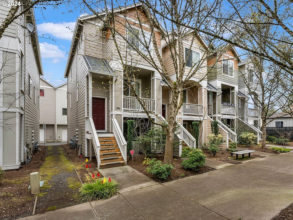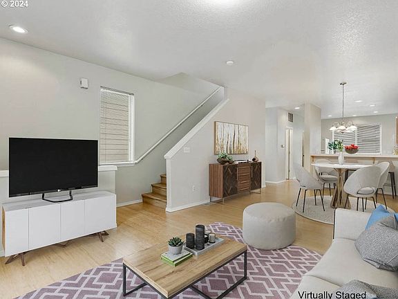 Welcome home to this pristine townhouse conveniently located close to Nike, Intel, shops, restaurants and the Elmonica max station.Step inside to beautiful bamboo flooring and luxury vinyl to compliment. The home was freshly painted and shows like a new home! The great room concept creates an open floor plan conducive to entertaining and ease of family gathering. The spacious gourmet kitchen has newer appliances, an eating bar, pantry and organizers for efficient storage. As spring is upon us enjoy your coffee or glass of wine out on the front deck and enjoy the beauty of the tree lined courtyard. There are two primary suites, one with a walk in closet and one with dual closets. Both suites have full baths and boast of high, vaulted ceilings. The lower floor offers a private office space or bonus room or 3rd bedroom, The oversize one car garage has additional storage. This one is ready for you to move right in and enjoy!