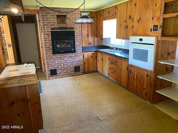 Great location in the Glen Ilah neighborhood of Yarnell. Access from either driveway to attached garage. Charming corner lot, home is setback and fenced. 2 bedroom,1 bath, open kitchen,living area. This home has lot's of potential. No furnace in home. Propane fireplace in kitchen. Yarnell features four mild seasons,blue skies,fresh air & cool breezes. 30 mins to Wickenburg & 45 min to Prescott, makes this area very attractive.