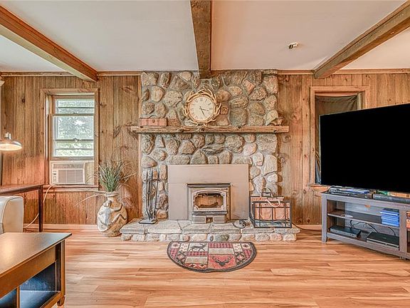 Country living at its finest only 20 minutes from Ft Drum! Peaceful setting deer walk right through the yard, trout fishing nearby! Pack your bags & move right in - 2 bed (easily convert to 3), 2 full bath home, detatched 2 stall garage has additional bay for storage, shed with electric & workbench. You will be wowed when you walk in, home is open & inviting, with warm colors. Stunning stone fireplace in living room, open concept kitchen/dining area & bonus room w/ sliding glass doors to enjoy the view! 2nd floor offers a master suite, a large second bedroom & yet another bonus space currently used as an office. Many updates: new furnace, glass & front doors, trim, flooring, tub, vanity, back splash, interior paint & refinished cabinets, freshly painted garage, shed & deck, & many more.
