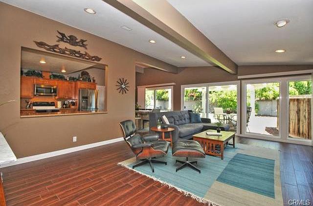 Absolutely Stunning Upgraded Single Story Home Situated on an Interior Corner Lot with RV Parking. It has been Beautifully Remodeled with Walls Removed to Create an Open Flowing Very Appealing Great-Room Design. It Features 1-Year-New Central A/C, Wood-Style Ceramic Tile Flooring, Dual Pane Windows & Sliders, Smooth Cathedral Open-Beam Ceilings with Recessed Lighting, Designer Paint, & New Base Boards. Huge Remodeled Gourmet Kitchen Features Granite-Style Countertops & Backsplash, Custom Cabinetry with Drawers & Pull-Outs, Electric Stove, Built-In Microwave, & Dishwasher. Large Garden-View Dining Room is Open to the Kitchen and Spacious Living Room with Walls of Glass, Stacked Stone Fireplace with Travertine Hearth, and Surround Sound with Bose Speakers. Arched Passage to 3rd Bedroom Opens it up to Serve at Den or Office. Mirrored Closets in Bedrooms. Both Bathrooms are Upgraded with Tile Flooring, Newer Fixtures, Pedestal Sinks, & Tile Surrounds. Master Suite has Slider to Private Patio. "Finished" 2 Car Garage with Epoxy Floor, Workbench, & Storage Cabinetry. Lovely Backyard with Covered Patio, Large Lawn, Manicured Landscaping, and Double Gates for RV Parking. Great Neighborhood Close to Parks, Beach, Shopping, Restaurants, and Excellent Schools.