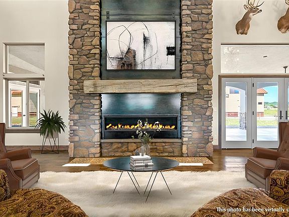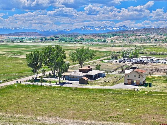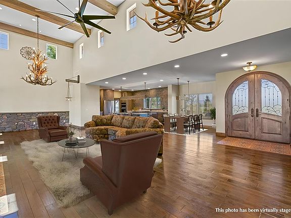 Indulge in the opulence of this upscale 2,976 square foot 4 bedroom, 3 bathroom designer home, complete with a custom barn featuring a 1,296 square foot upstairs luxury apartment, all nestled on 4.5 acres. This property boasts substantial income potential and is ideally situated near the esteemed Cobble Creek Golf Course, offering the perfect blend of town convenience and serene country ambiance. The main residence is a masterpiece of modern upgrades and timeless elegance. Enter through a Spanish mosaic tile entryway that seamlessly complements the fireplace beyond. Hickory wood floors usher you into the grand living room, where a 19-foot ceiling with exposed beams is adorned with magnificent antler chandeliers. The floor-to-ceiling fireplace, crafted from rock and steel with a wood beam mantle, serves as a stunning focal point. The kitchen is a culinary dream come true, featuring expansive quartz countertops, knotty alder cabinets, and high-end stainless-steel appliances, including a heated countertop on the island. Wood beam lighting adds a touch of rustic charm. The primary bedroom is a sanctuary of luxury, complete with an attached sitting room and a double-sided fireplace. The ensuite bathroom is pure indulgence with heated floors, a large tiled walk-in shower, and a double vanity featuring lighted onyx countertops that glow. Enjoy direct access to a private patio and hot tub from the primary bedroom. A second ensuite bedroom boasts a charming kitchenette with a sink, refrigerator, cooktop, and built-in microwave, as well as access to the back patio and a beautifully appointed full bathroom. Don’t miss the large tiled mudroom including a convenient pet washing station. The spacious 2-car attached garage offers ample storage. Unwind on the expansive covered back patio transforms into an additional living space, featuring a fireplace, built-in gas grill with countertop, and two ceiling fans, all overlooking breathtaking valley views. The newly finished barn is an equestrian enthusiast’s dream, with two stalls, a tack room, and two extra rooms, one equipped with a sink. Hidden upstairs is a sophisticated 1,296 sq. ft. one-bedroom luxury apartment with high-end finishes, a gas fireplace, and vaulted ceilings with exposed wood beams, and a south-facing deck offering stunning views of the San Juan Mountains. This space is perfect for a short-term rental. Separate fenced pastures make this property ideal for hobby farming or equestrian pursuits. This property does have irrigation water. Whether you seek a serene retreat or a property with substantial income potential, this exquisite estate in Montrose is a rare find.