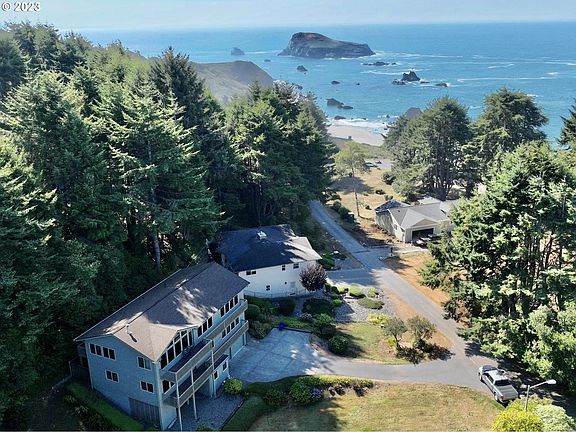 Motivated Seller! Seaside, coastal stunning 4-bedroom, 2.5-bathroom home boasting an impressive 3,251 square feet of luxurious living space.  This beautiful coastal home combines casual elegance and comfort, offering some ocean views, peaks, and sounds that captivate the senses, immersing you in a serene seaside lifestyle.  Just a few minute's stroll away to a private deeded beach and community picnic area, you'll find this beautiful haven surrounded by meticulously landscaped grounds that mirror the area's natural beauty.  Here, you can savor the quintessential oceanfront lifestyle without compromising on modern amenities.  The heart of the home is the kitchen, granite countertops, custom cabinetry, and stainless steel appliances, all aimed at making your culinary adventures a joy.  The spacious pantry ensures you have all the room you need for additional storage.  The living area showcases beamed vaulted ceilings that add an element of grandeur, beautifully complementing the beautiful wood-burning stove.  Hardwood floors run throughout the main living areas, adding warmth and style.  This home has a central vacuum system and a spacious, quiet, certified elevator for the utmost convenience, making every level of this retreat easily accessible.  This home is part of one of Brookings' most coveted gated communities, with the added advantage of low annual HOA dues, just $850 a year.  These dues cover essential amenities like beach access, road maintenance, a picnic area, and a private gate, offering peace of mind in a beachfront secure environment.  You'll have easy access to local restaurants, entertainment venues, and additional beaches just minutes away!  The newer 50-year roof is only five years old!  Abundant parking space.  The oversized garage is approx 20x26, and an additional 12x12 room is attached.  Please make an appointment to view it today!  Gated access and no drive-by are available.  Ask to see the 3D tour!