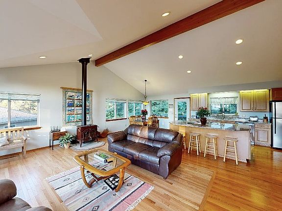 - Features: Deck, Great Room, Hardwood Floors, Vaulted Ceiling, Wood Stove