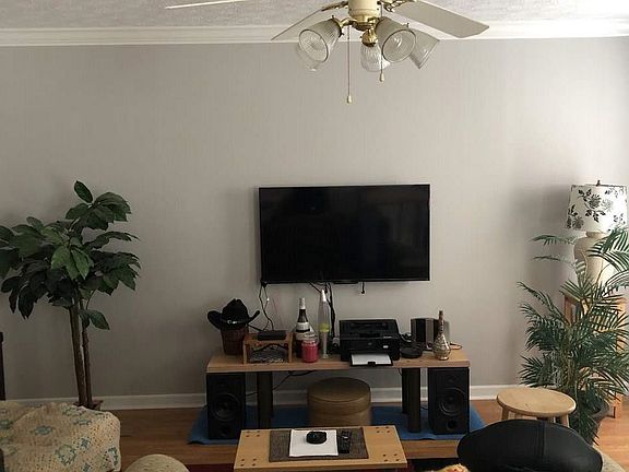 - LIVING ROOM DESC: Crown Mold, Window Cov, Laminate Floor, Ceiling Fan