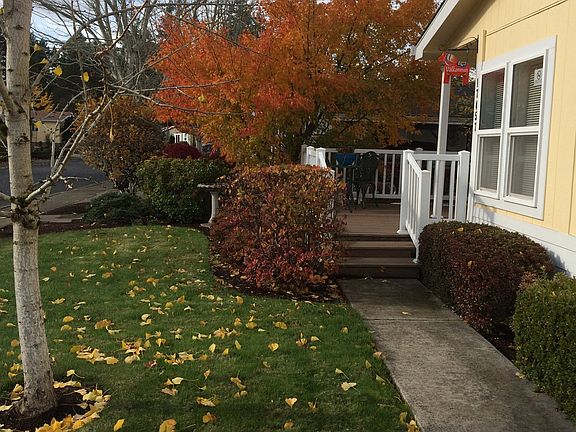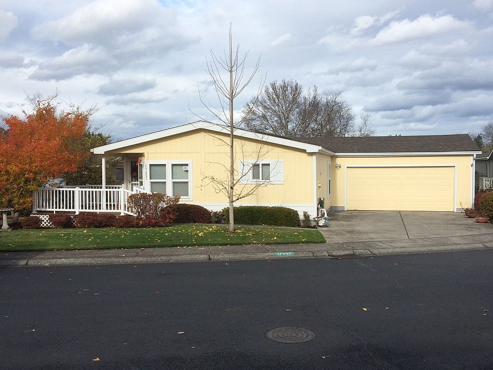 SALE PENDING! IMMACULATE in SPRINGWOOD! LOW $580/mo space rent! Totally tape/textured 2BR/2BA w/BRAND NEW COMP ROOF,attached dbl GARAGE!LG beautifully lawn/lndscaped front/back yards! NEWER 13x12 TREX porch/deck! 15x12 railed CEDAR deck! HEAT PUMP! Maple LAMIN floors,Vinyl windows THRU-OUT! SUNNY Breakfast Nook! NEW walk-in TUB in LG LOVELY Master! ALL appliances stay! GORGEOUS home in the MOST SOUGHT AFTER PARK in Portland metro area!
