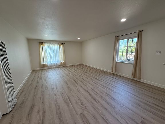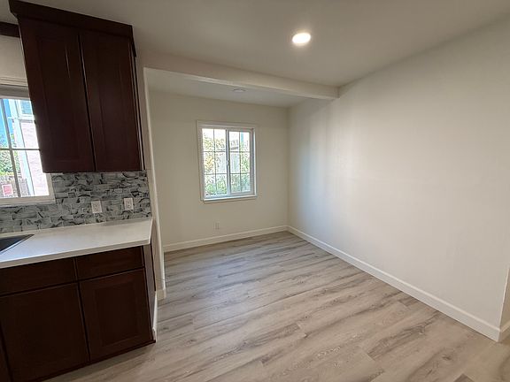 Bright and spacious open concept living! Step into this freshly painted, open concept two bedroom, one bath property offering 1039 ft. of inviting, light-filled space. The living room, dining area, and kitchen flow, seamlessly together, creating an airy and connected layout. That's perfect for both every day living and entertaining. Enjoy the warmth of natural wood floors, a remodeled kitchen with new stainless steel appliances, and a charming breakfast nook for casual meals. The primary bedroom features a walk-in closet, while the large backyard provides a peaceful retreat for relaxing or hosting guests. Garage parking and driveway space add extra convenience. water, trash, and gardening services are included a smart monthly savings and added peace of mind. Stylish, spacious, and move-in ready this will maintain home blends, comfort, function, and value in one inviting space. Owner pays for water and trash!