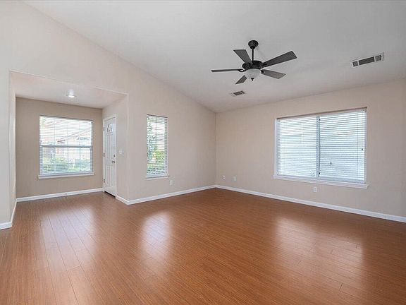 Impressive home in The Vineyard, a highly desirable 55+ gated community! This property is ideal if you're looking for a low maintenance home without compromising on space. The living room is spacious with gorgeous LVP floors and tasteful interior paint. This floor plan offers a Master Bedroom with walk-in closet, a spacious guest bedroom with wall to wall closets, a large office/den that could be a third bedroom, and an additional hobby/craft room right next to the kitchen. You'll appreciate all the extra storage in the kitchen with an added space for a dining table. Enjoy a private backyard and covered patio area with easy access from the kitchen and garage area. Community amenities include walking trails, rv/boat parking, pool, clubhouse and ponds.