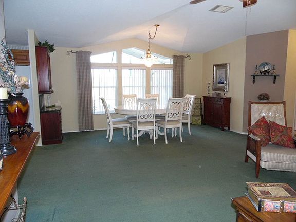 SELLER OFFERING FREE LOT RENT FOR 6 MONTHS WHEN YOU BUY! Welcome "home" to this spectacular and stunning three bed, two bath home located on the golf course and Lake Haines! You'll appreciate the extra wide driveway/carport that can accommodate up to four vehicles plus an additional one car garage that also has room for the golf cart. Once inside, you will notice that the home has been well taken care of with upgrades such as drywall throughout main living space (including one of the guest bedrooms) with knockdown ceilings. The bonus room has been turned into a cozy den/TV room which features a unique built-in cabinet & desk with shelving for all your office needs. Right off the kitchen is the lanai, which overlooks breathtaking views of the golf course and Lake Haines! Just beyond the lanai, is a large screened enclosure which is perfect for creating an outdoor living area with fire pit to relax while soaking up the sunset in the evenings. New A/C in 2015. Home is being sold "turnkey" and purchase includes golf cart plus ONE YEAR FREE GOLF!