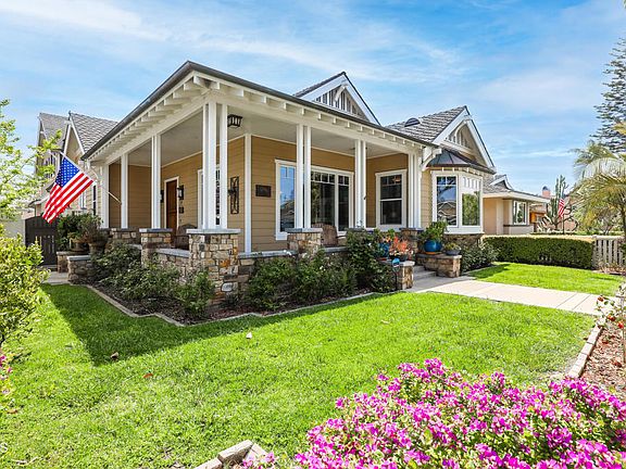 Welcome home to an exceptional custom-built Huntington Beach estate. Located less than 1 mile from Huntington's iconic surf and sandy beaches, this rarely available home has been carefully crafted to blend high-end appointments with a casual beach style. The home sits on an extra-large 7,832 square foot corner lot on Main Street providing ample guest parking, privacy from neighbors, quick and convenient access to the beach and one of the best locations to view the 4th of July Parade! The home features 4 bedrooms and 4 bathrooms with 3,791 square feet of comfortable yet exceptional living space. Elevated ceilings adorned with custom wainscoting are not only a conversation piece but allow natural light to flow into and through the living space. Rich walnut floors guide you through the main downstairs living space. The luxurious kitchen features chef-grade Thermador appliances. The spacious quartz island is perfect for family breakfast gatherings or entertaining guests. The kitchen features custom cabinetry, bar seating, island prep sink, walk in pantry and opens nicely to the main living area and the built-in breakfast alcove. Also located on the first level is the primary bedroom suite with elegant en-suite bathroom complete with heated flooring, steam shower, a soaking tub and enormous walk- in closet. An additional spacious second bedroom is also located on the primary level. The upstairs living space offers two large bedrooms with a pass through bathroom with dual faucets and a large loft/bonus room that is perfect for a home office or playroom. The outdoor space features an iconic wraparound front porch, white picket fenced front yard, privacy vinyl fencing side yards, built-in bar-b-que space, water and fire feature and low maintenance landscaping throughout. Other notable features include: formal dining room, entire home surround sound including garage, spacious 4 car garage with epoxy floors, solar, mud room, laundry room, crown molding, custom cedar lined closets and ample storage throughout. This is a rare and special Huntington Beach home and an opportunity not to be missed.