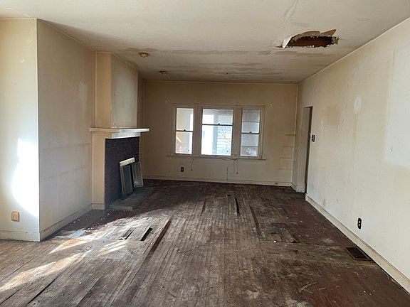 Brand New Roof Installed February 2025! The interior offers a living room with a fireplace, kitchen, dining room or den, primary bedroom or great room with access to a half bath and laundry room, a 2nd bedroom and full bathroom all on the main level. The upstairs offers the 3rd bedroom and second half bath. Lots of Rooms, Lots of Potential! Other amenities include an enclosed front porch, partially fenced backyard and unfinished basement. First Look Initiative through 04/11/2025