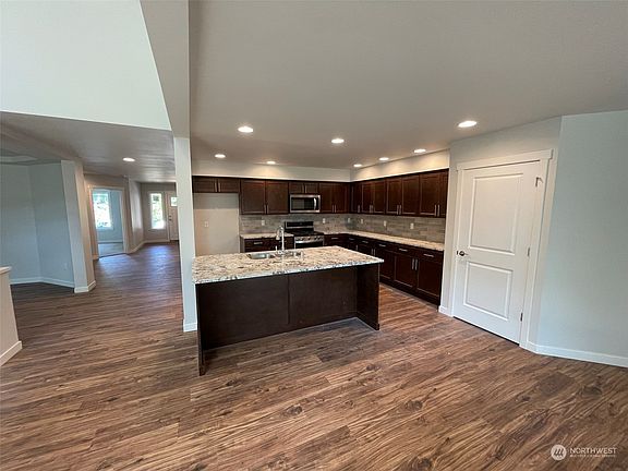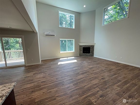 Beautiful forested lot, views possible with tree clearing, 2 Car garage with shop space. The home is completed with maple cabinets, LVP floors, slab granite counters, full height backsplash, white painted millwork, wood wrapped windows, double panel white painted doors and stainless steel appliances. High ceilings in the huge family room, formal dining room, downstairs office and a huge master bedroom make this home extremely functional. Hybrid heat pump water heater, High Efficiency ductless mini splits provide both heating and air conditioning to the entire living area.