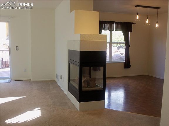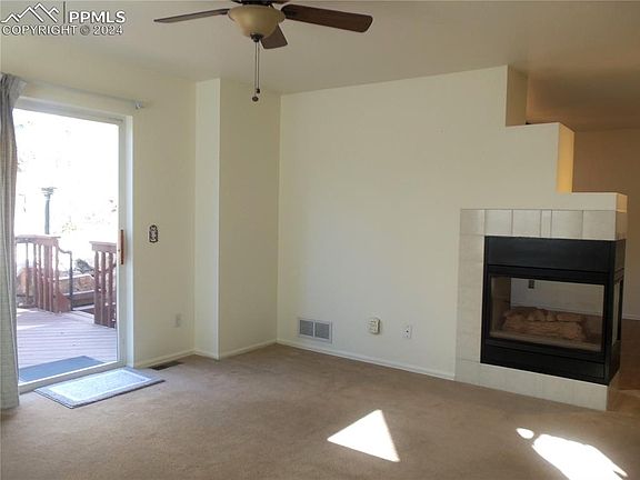 Fabulous west side condo near Bear Creek Park, nestled in the foothills of Pikes Peak! This highly sought after home is an end unit with 3 bedrooms, 2.5 baths, oversized 2 car garage & central air. Within this small quiet complex the home is located at end of a cul-de-sac, with killer mountain views, close to club house & mailboxes. Living room walks out to the large deck, backyard & garden area. 2 sided gas fireplace is located between living & dining rooms for that extra cozy feeling. Kitchen with pantry adjoins dining room & also has a breakfast nook with breakfast bar, currently set up as a main floor office area. Master bedroom has sitting area, walk-in closet & adjoining master bath with large walk-in shower. Convenient laundry, with washer & dryer included, is on upper level. 3rd bedroom was used as office. Linen closet & ample storage throughout. Home has central A/C, 3 ceiling fans & 2 additional A/C units to keep upper level nice & cool. You will be so comfortable living here! Convenient location near Bear Creek park with hiking trails, play area & pickleball courts, dog park & community garden. Close to public bus line, restaurants & shopping. Easy access to the mountains, I-25, Ft Carson, the Broadmoor & downtown. Don't miss this great home!