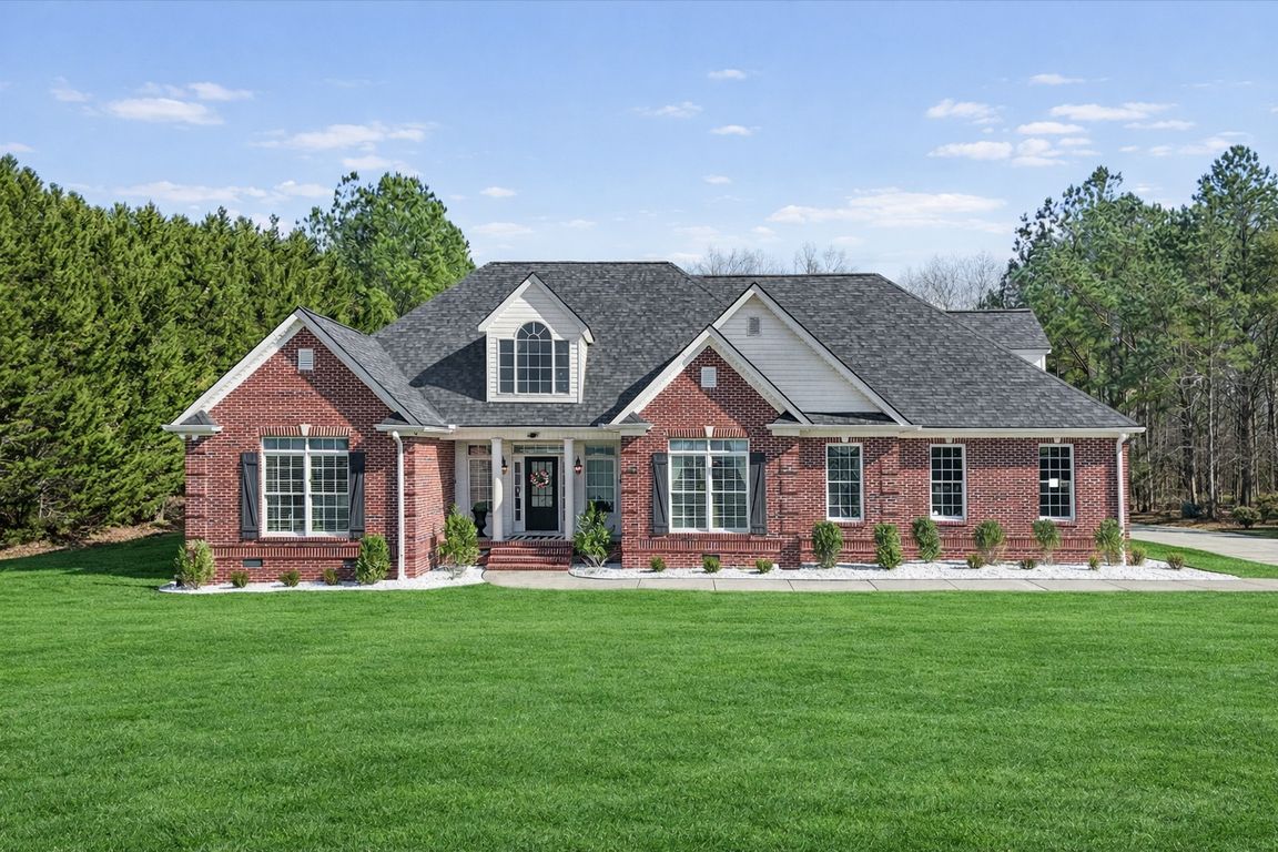 Welcome to this beautifully updated all-brick home set on 1.85 private acres, offering space, quality craftsmanship, and modern upgrades throughout. A tiled foyer with a grand chandelier welcomes you inside and flows into the living room, with a vaulted ceiling and a gas-log fireplace, and custom shelving. The split-bedroom floor plan ...