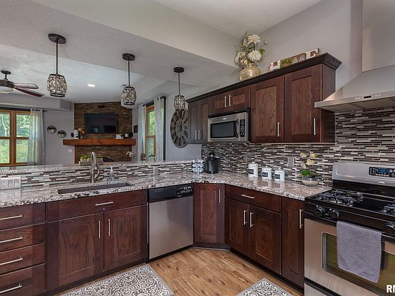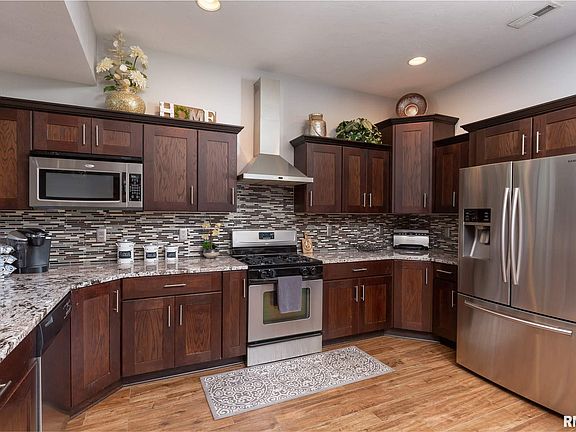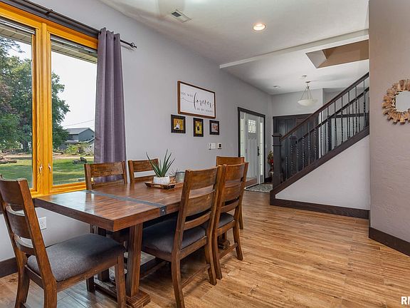 OPEN HOUSE for 8/30/20 Cancelled. This custom built open floor plan 4 bed 4 bath home boasts 3,275 square feet of finished living space. I'ts situated on a tree lined 1.36 acre level lot with plenty of outdoor seating overlooking the already established garden. Quite neighborhood with a country feel and conveniently located near shopping and dining. The main level features 10 ft ceilings, an open concept living room w/ bar and fireplace, private office, full bath and your dream kitchen with granite counters, large breakfast bar, extra large walk in pantry and stainless appliances. Upstairs are 2 master suites, two additional secondary bedrooms, laundry room w/ brand new washer / dryer, an extra full bath and a large bonus room for entertaining. In addition you will love the over-sized 34' x 34' 3 car garage with radiant in-floor heat throughout all of the main level. North Scott School District with school bus pick up available. Don't delay...call today!