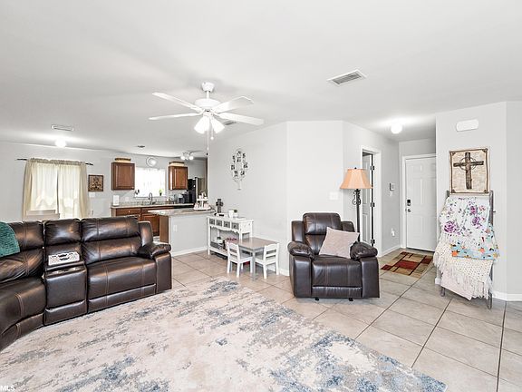 This Beautiful 1474 sqft split home design boasts 3 bedrooms, 2 baths AND a flex room currently used for a guest bedroom. Open living, dining, and kitchen area. GRANITE Countertops. Primary bathroom has separate shower, garden tub and his and her closets. Freshen up this home with a coat of interior paint and replace carpet in the primary bedroom to make it the best, most affordable home in the neighborhood. FENCED backyard. $550/yr Hidden Lakes HOA fee includes a community Pool, stocked fish Pond, outdoor BBQ area, Tennis Courts, Sidewalks and Street Lights to enjoy a walk around the community! Hidden Lakes is a desirable neighborhood with no other homes available at time of listing. Apx 15 minutes to Gulf Shores Beach, and minutes away from the shopping centers, OWA, and restaurants. Buyers or buyer's agent to verify any information contained in listing. Room dimensions are approximate.